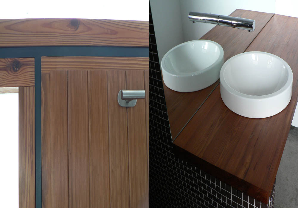 -Se cuida la elección de los materiales: piedra Sant Vicent, madera de mobila vieja, carpintería de acero, etc